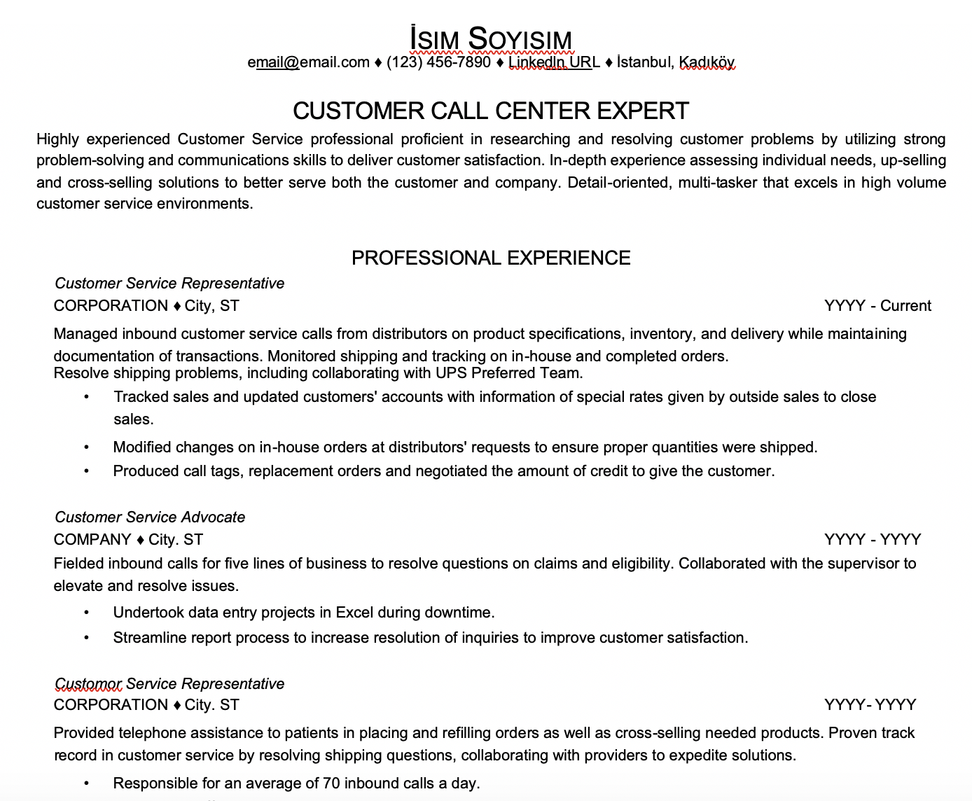 - Call Center CV Örnekleri