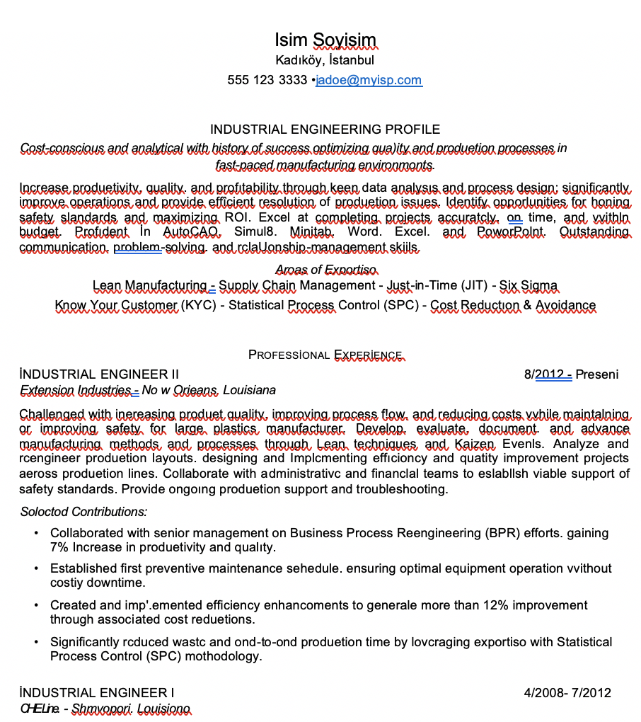 - Endüstri Mühendisi CV Örnekleri