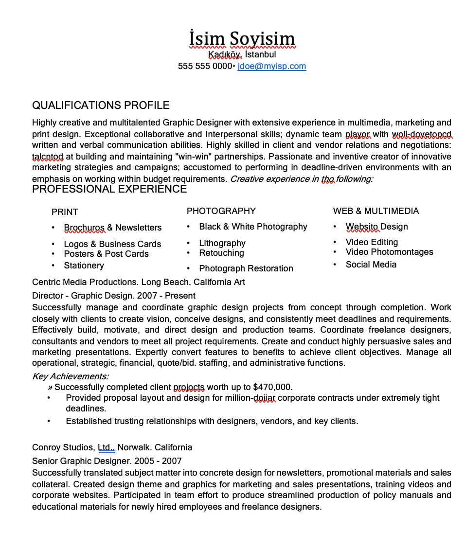 - Grafik Tasarım CV Örnekleri