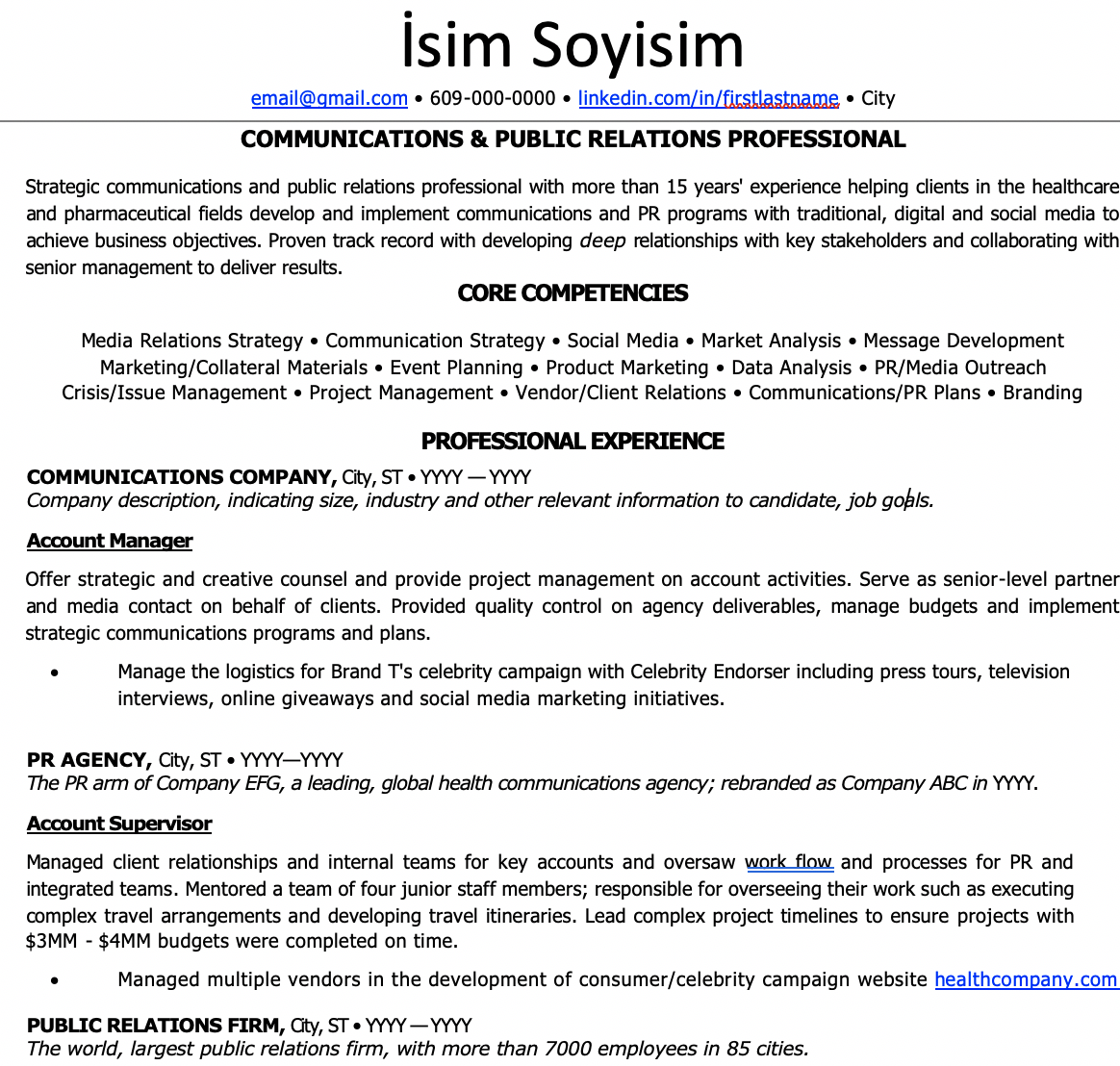 - Halkla İlişkiler CV Örnekleri