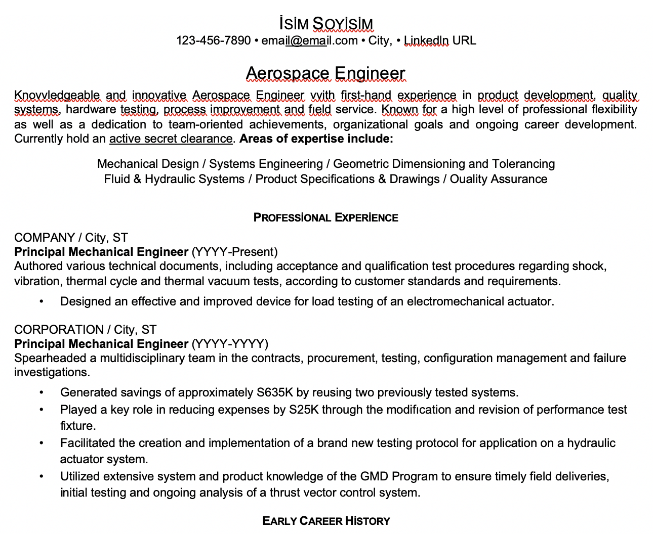 - Havacılık CV Örnekleri