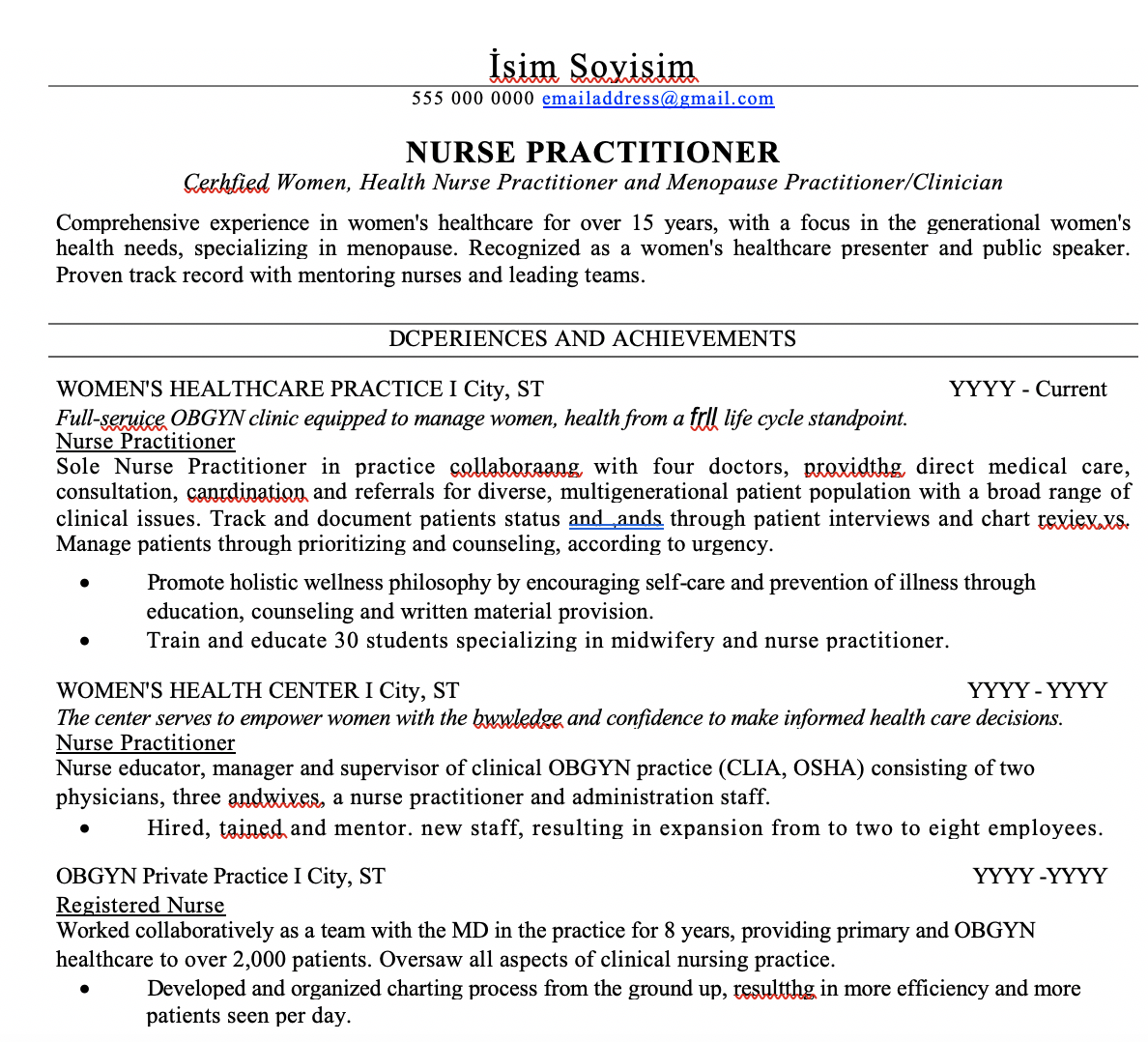 - Hemşire CV Örnekleri