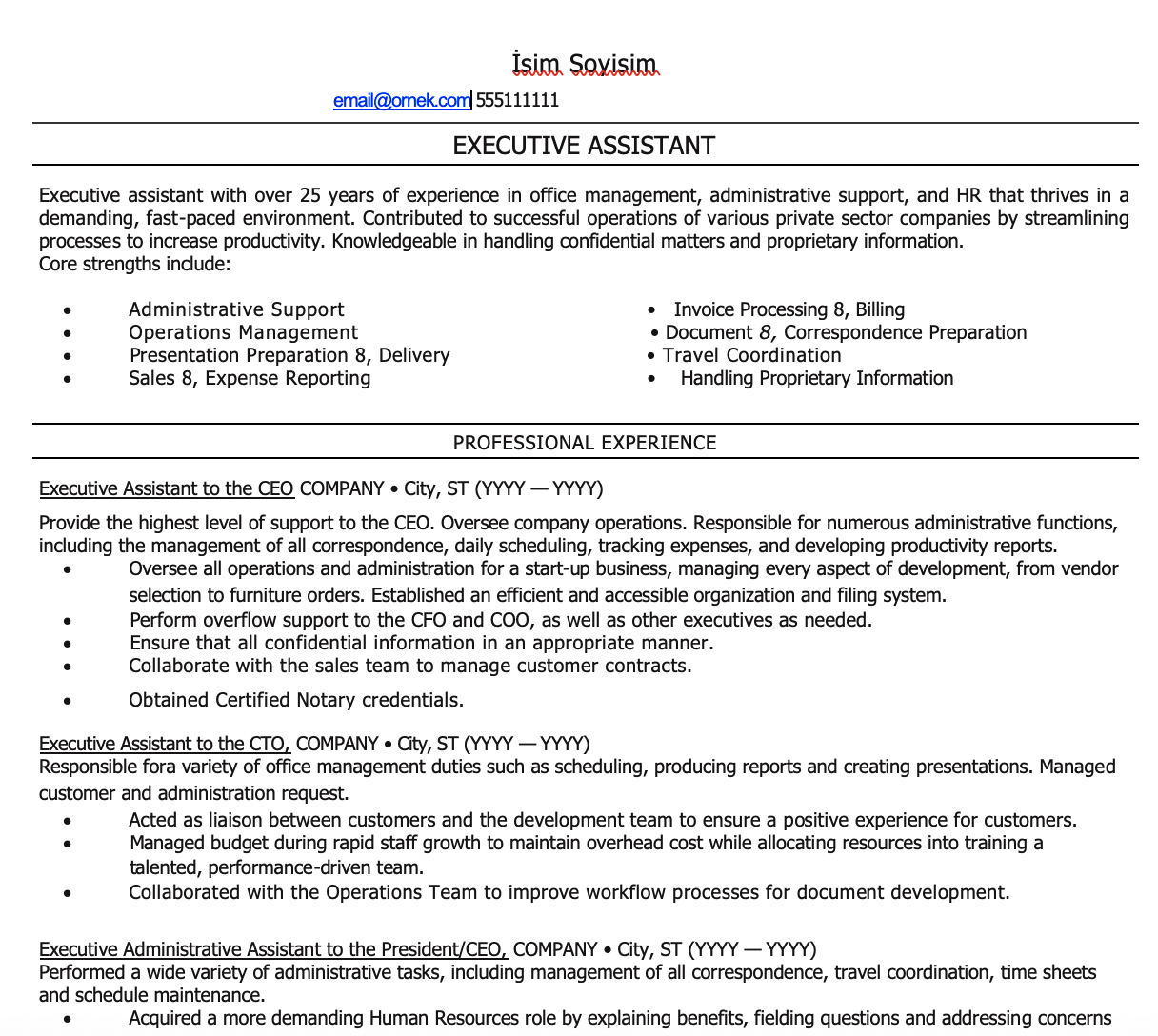 - Yönetici Asistanı CV Örnekleri