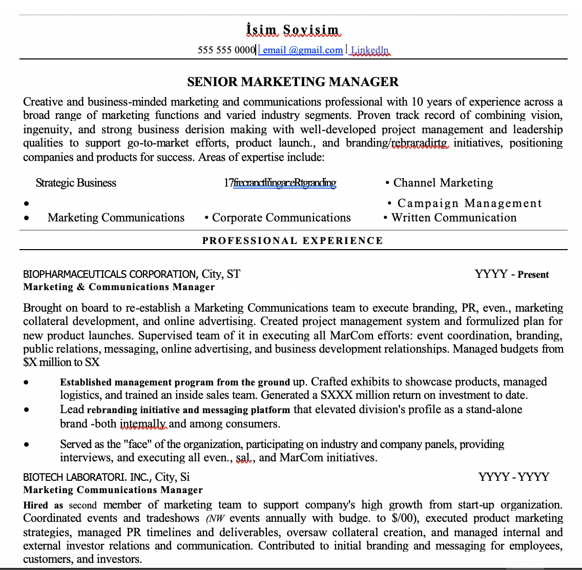 - Pazarlama CV Örnekleri