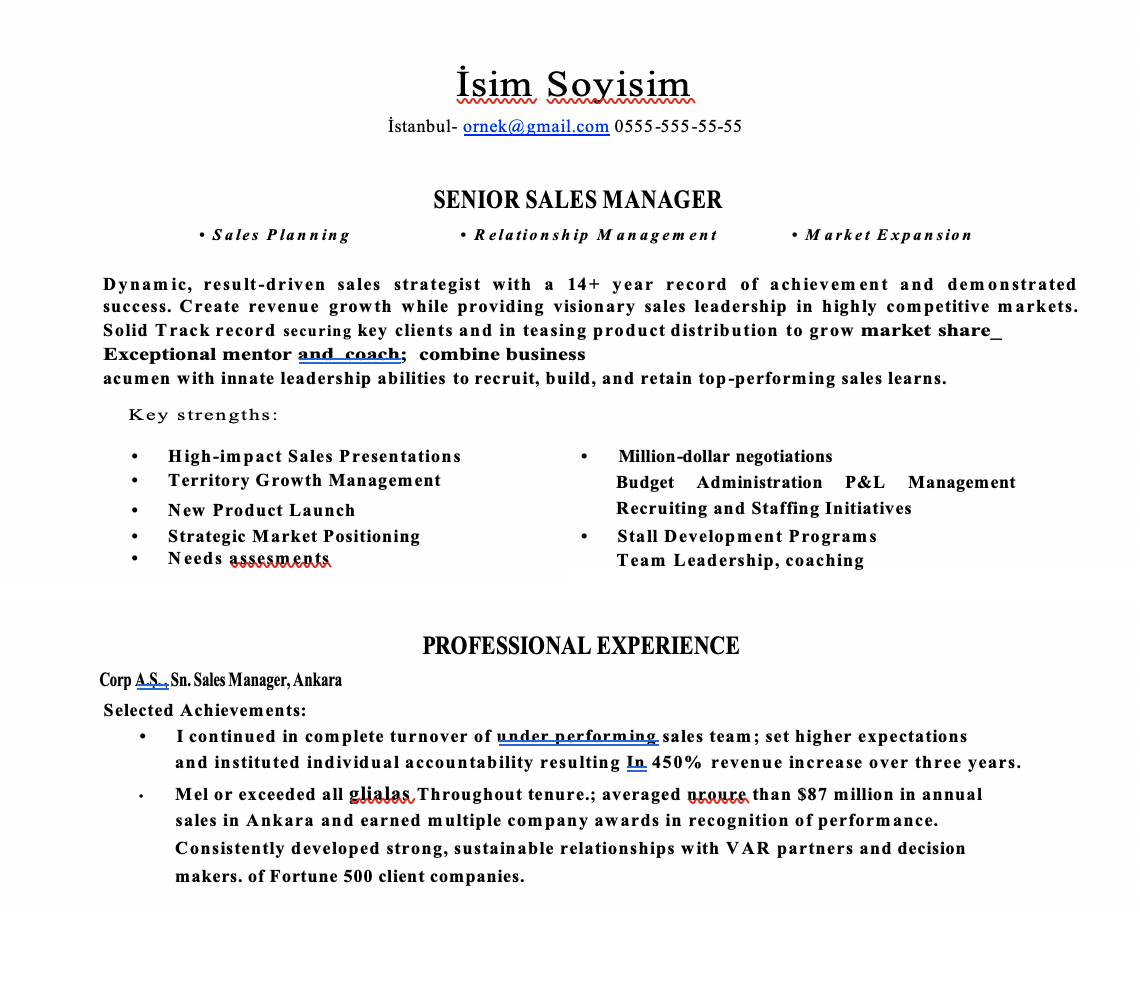 - Satış CV Örnekleri