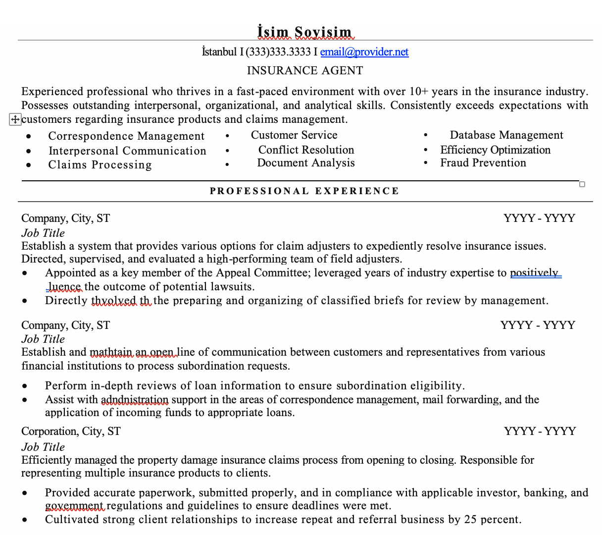 - Sigorta CV Örnekleri